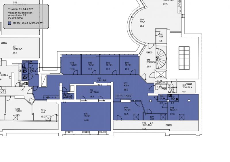 Tyylikäs viidennen kerroksen 299 m² toimisto keskeiseltä paikalta Annankadulta.