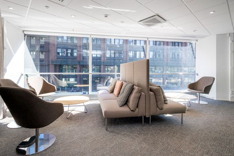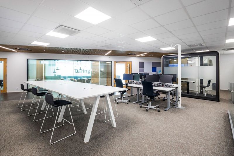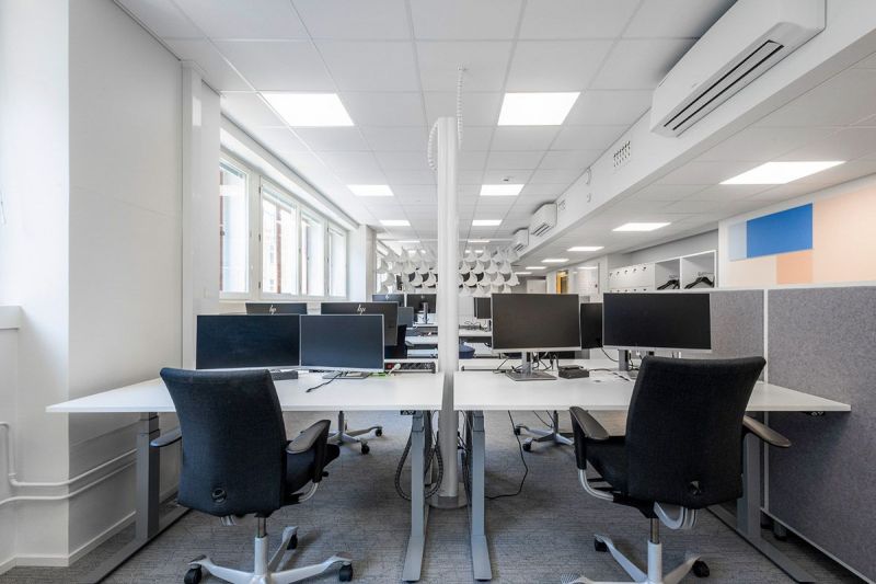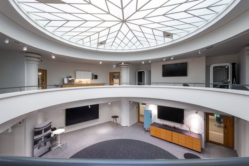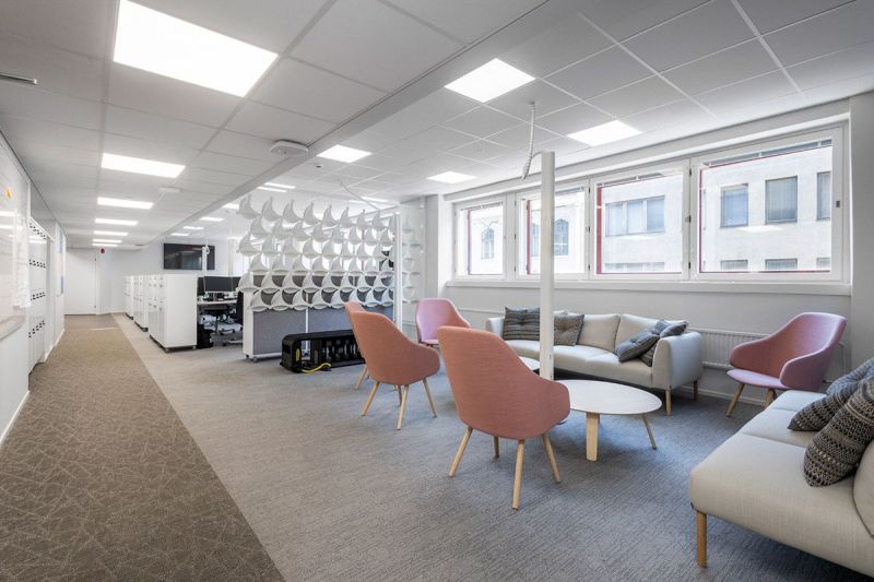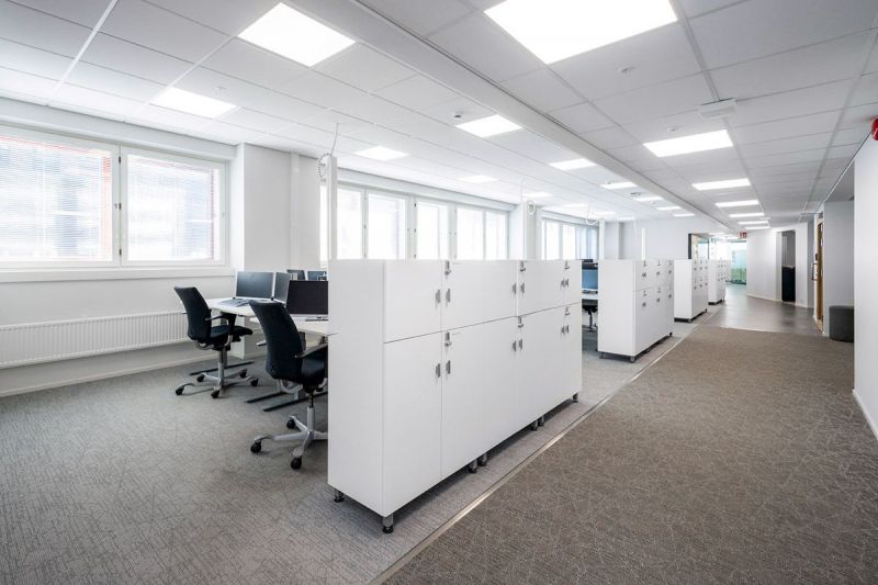 Moderni ja tyylikäs, kolmessa kerroksessa sijaitseva 2135 m² avotoimisto hyvien julkisen liikenteen yhteyksien varrella suositulla paikalla Kaisaniemessä.