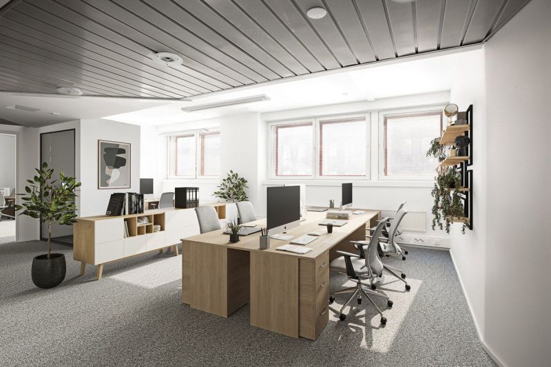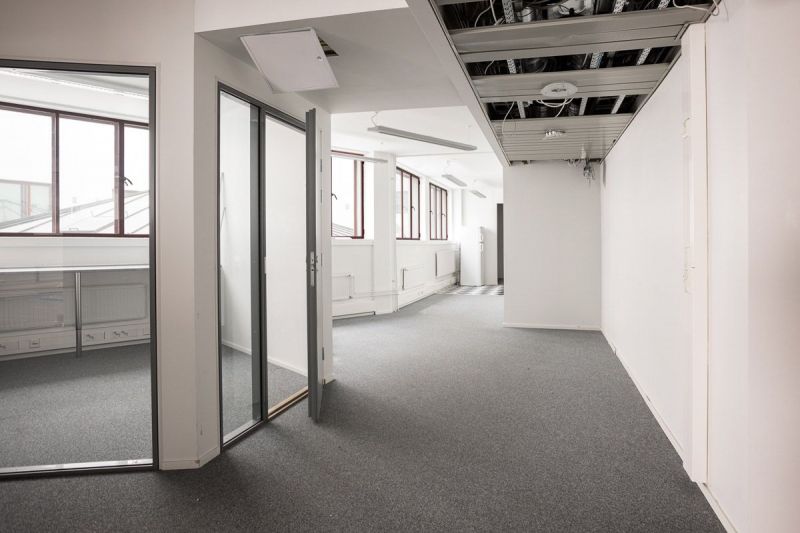 Avotilasta ja muutamasta työhuoneesta koostuva 5. kerroksen toimisto.