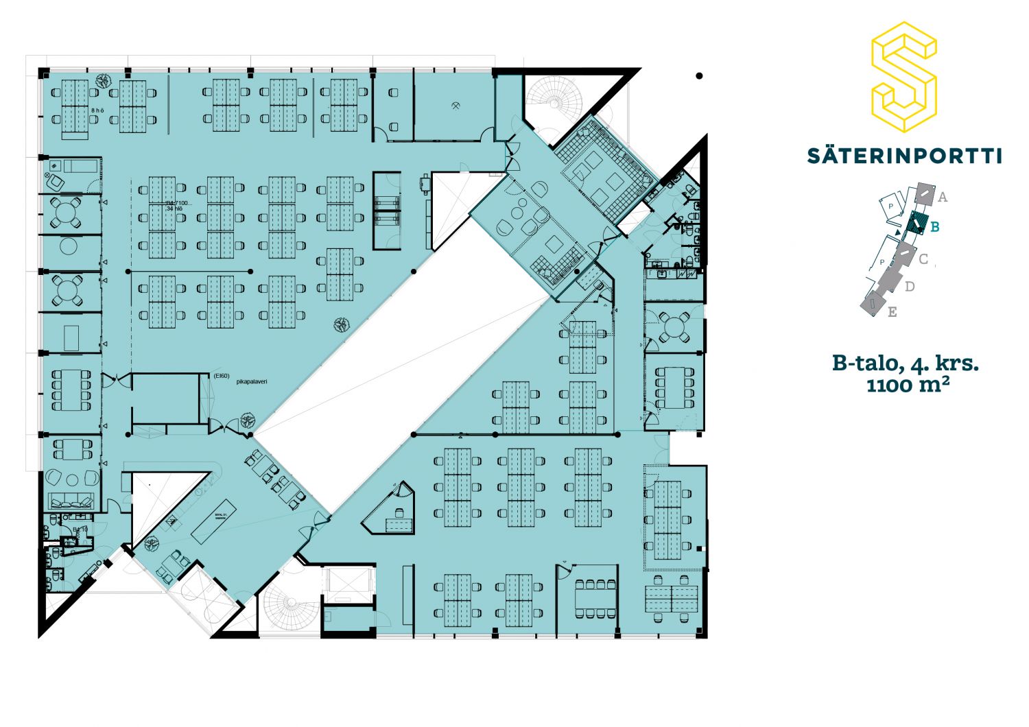 Koko C-talon toisen kerroksen kattava toimistokokonaisuus. Erinomainen mikrosijainti Säterinportissa sillä pääaula ja vieraiden vastaanotto ovat alakerrassa.