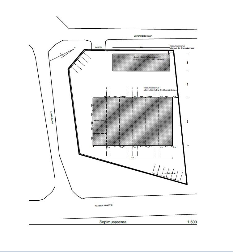 Tilat ovat asfaltoidulla ja aidatulla tontilla.