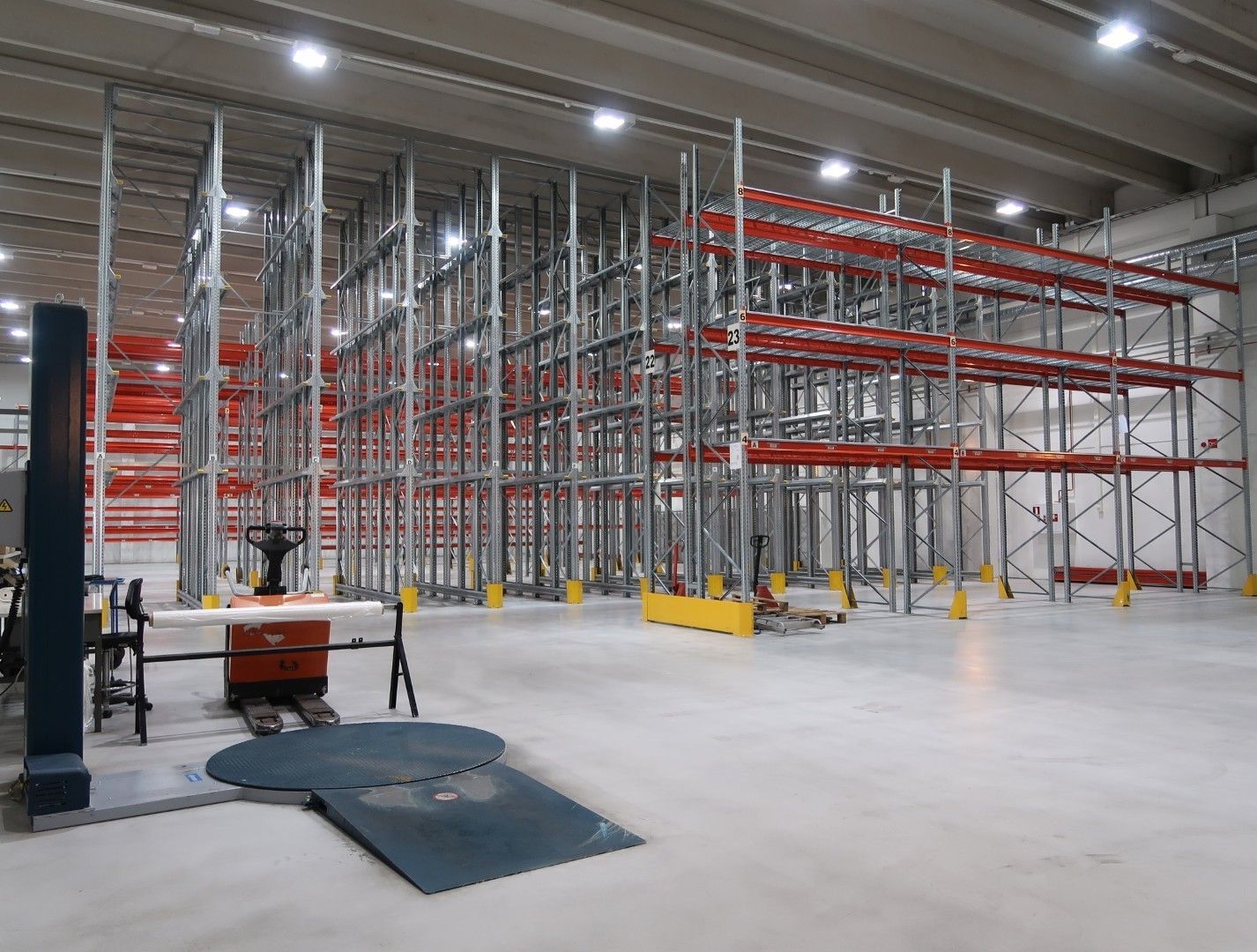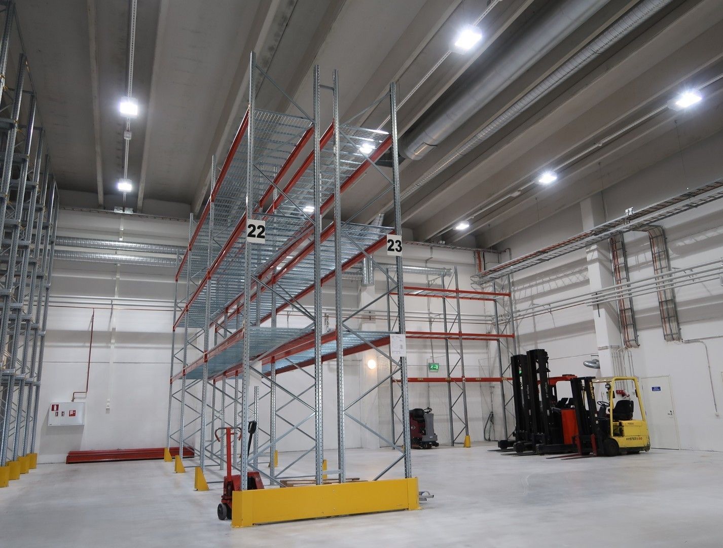 Vuokraan sisältyy mm. monipuolinen trukkilavahyllyjärjestelmä, jossa n. 1.500 lavapaikkaa. Lisäksi trukit ja myös muut kuvissa näkyvät irtaimet tavarat ovat neuvoteltavissa vuokralaisen käyttöön.