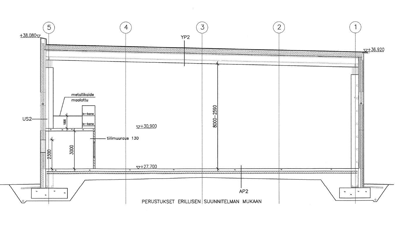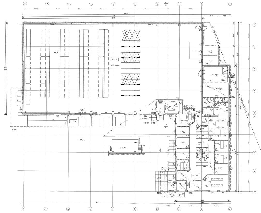 Rakennuksessa on 8 metriä korkeaa tuotanto- / varastotilaa n. 1.326 m². Käynti maantasolta lastauslaiturin kautta. Kaksi erillistä lastaustaskua. Lisäksi toimistotilaa n. 352 m². Rakennuksen kaikki tilat ovat 1-tasossa. Hallitilan ja toimistotilan välissä on sosiaalitila ja tekniset tilat sekä väestönsuoja.
