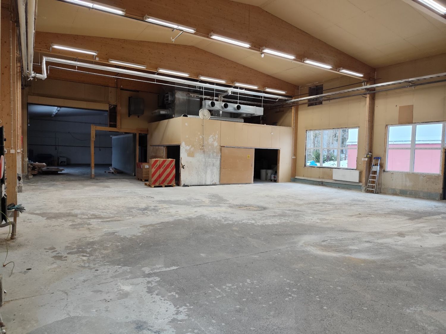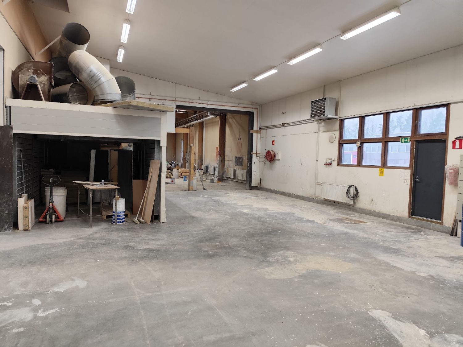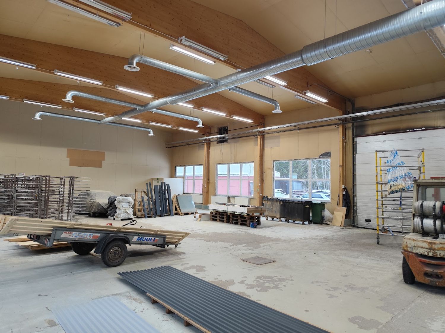 Hallissa olevein nosto-ovien korkeus on 4,4 m joten sisäänajo esim pakettikautolla onnistuu hyvin. Lattiakaivot ovat olemassa