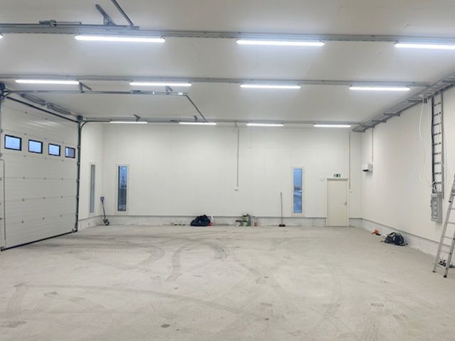 Kunto, varusteet ja palvelut: Uudet tilat. Nosto-ovet, lattiakaivot, voimavirtaa, vesi- ja wc-varaus, ilmalämpöpumppu