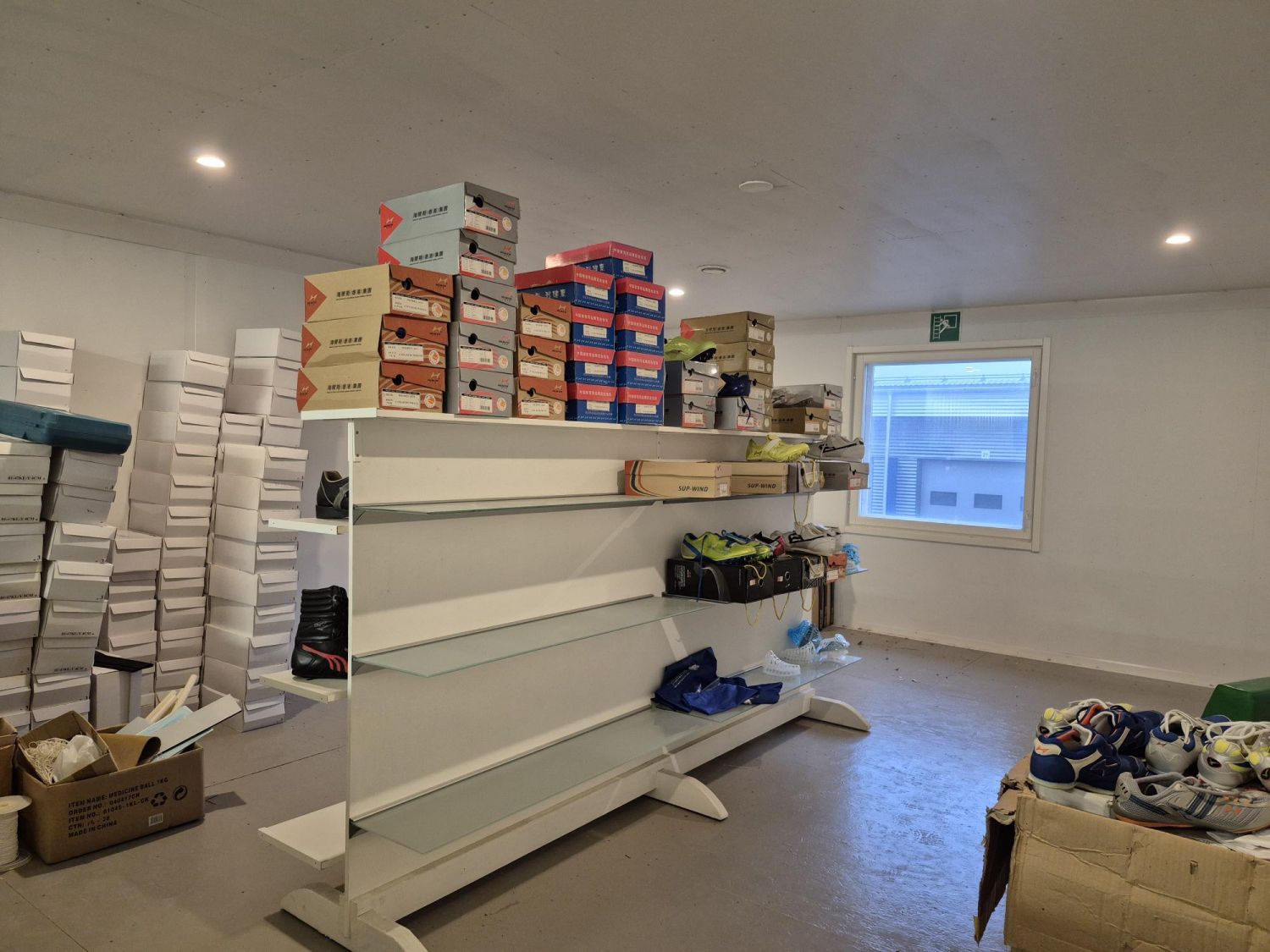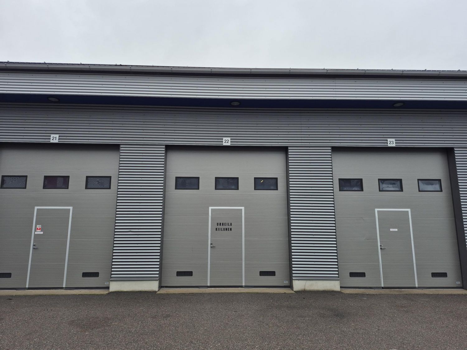 Moottoroitu nosto-ovi 3,45 * 3,8m. Vapaakorkeus 5m ja parvella 2,4m.