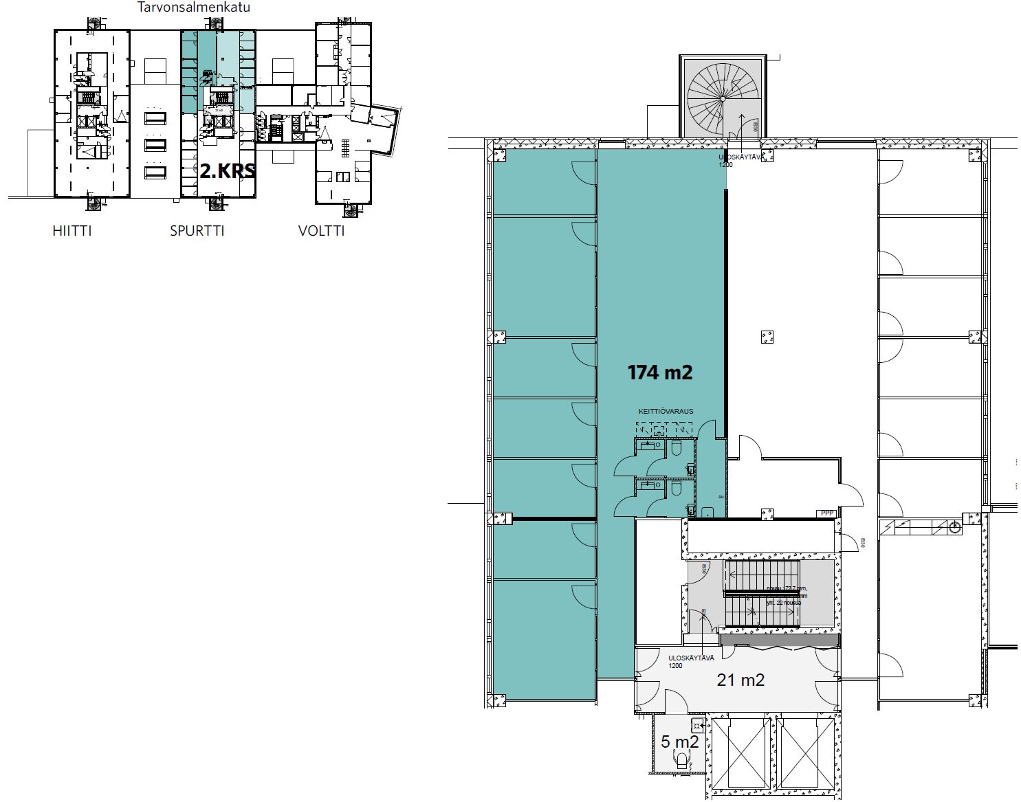 Tehokas ja moderni 174 m²:n toimistotila rakennuksen toisessa kerroksessa. Tila muodostuu useista erillisistä huoneista, joita täydentää toimiva avotila, mahdollistaen joustavan työskentelyn niin keskittymistä vaativiin tehtäviin kuin tiimityöhön. Pohjaratkaisu soveltuu erinomaisesti pienemmälle tai keskisuurelle organisaatiolle, ja omat wc-tilat lisäävät arjen sujuvuutta ja käyttömukavuutta.