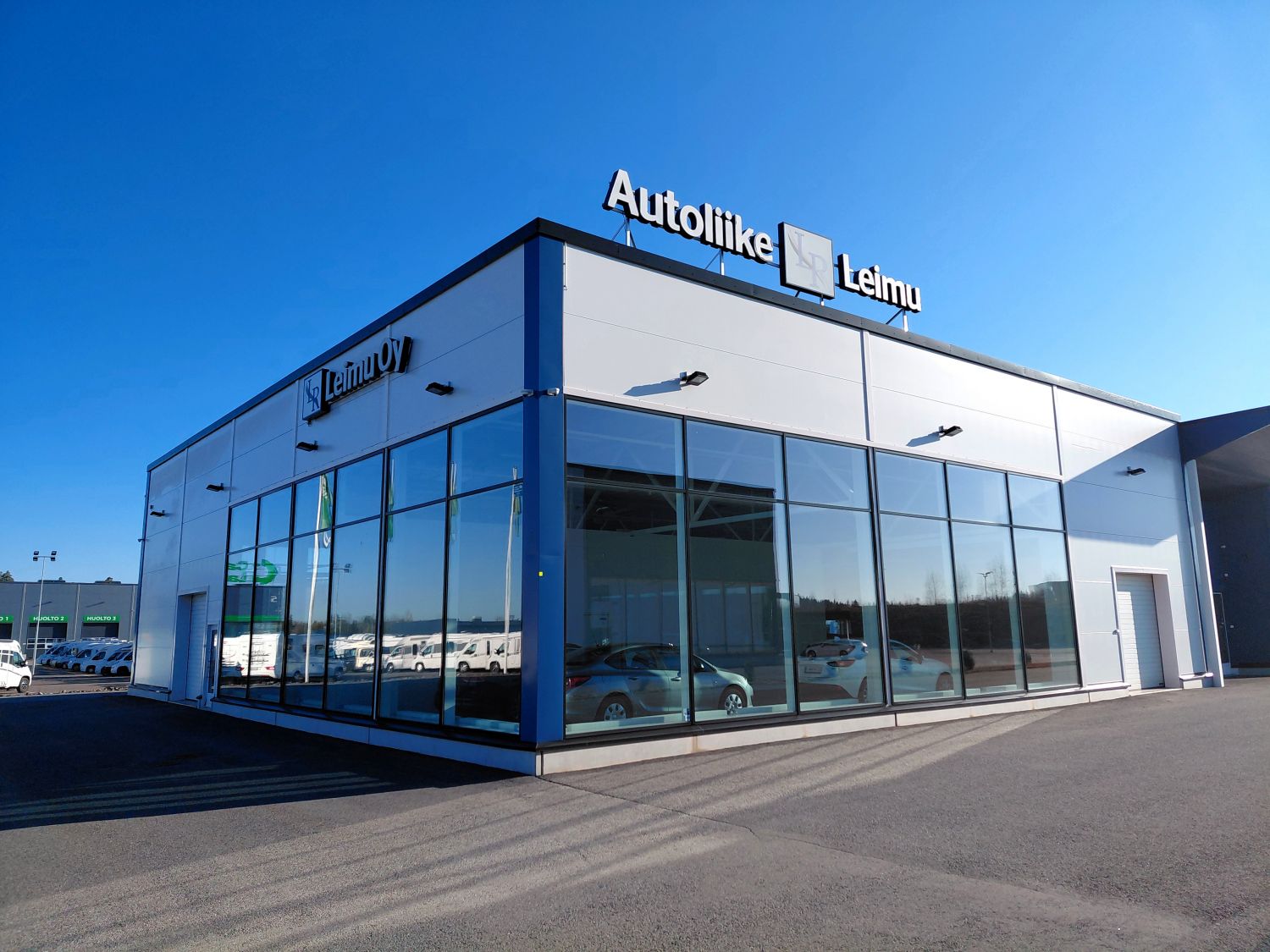 Myymälätilat ovat edustavat ja asiakaslähtöiset: toimistot, neuvotteluhuone ja automyyjien työpisteet muodostavat sujuvan kokonaisuuden. Henkilökunnan sosiaalitilat ja tekninen tila sijaitsevat toisessa kerroksessa, omassa rauhassaan.