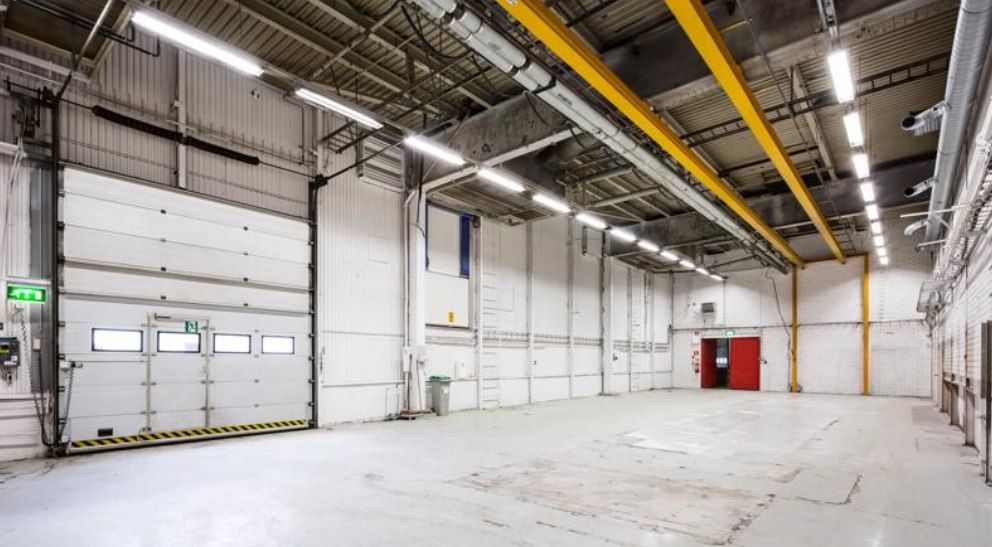 Tilassa on nosto-ovi, joka mahdollistaa sujuvan tavaraliikenteen. Vapaa korkeus on noin 6 metriä, mikä tukee tehokasta tilankäyttöä esimerkiksi hyllyjärjestelmien tai koneiden sijoittelun osalta.