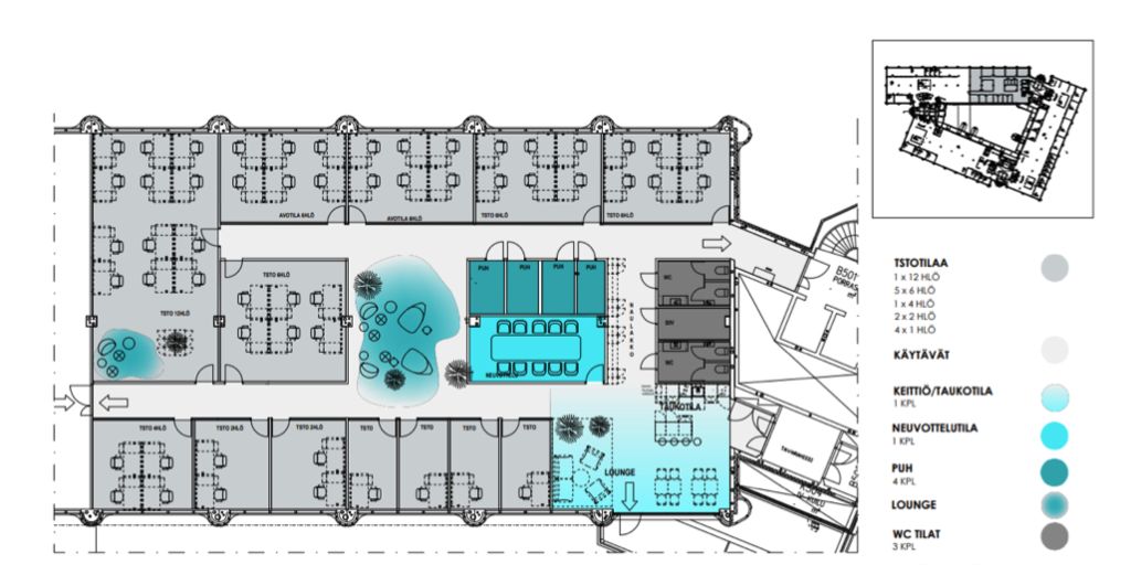 Tämä 542 m² toimisto sijaitsee kiinteistön 5. kerroksessa. Toimisto on huoneellinen, ja siihen kuuluvat omat keittiö- ja wc-tilat.