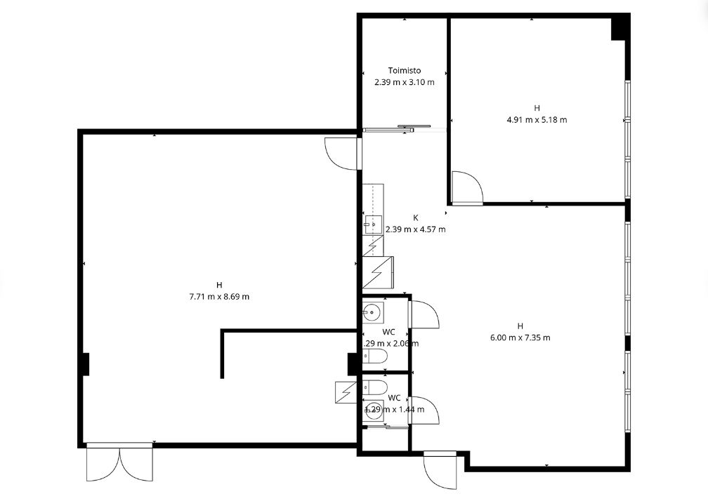 Tämä tila sijaitsee rakennuksen katutasossa. Tilakokonaisuudesta 100m2 on toimistotilaa ja 80m2 on ikkunaton korkea tila, johon on myös erillinen sisäänkäynti, minkä vuoksi sopii erinomaisesti myös showroomiksi.