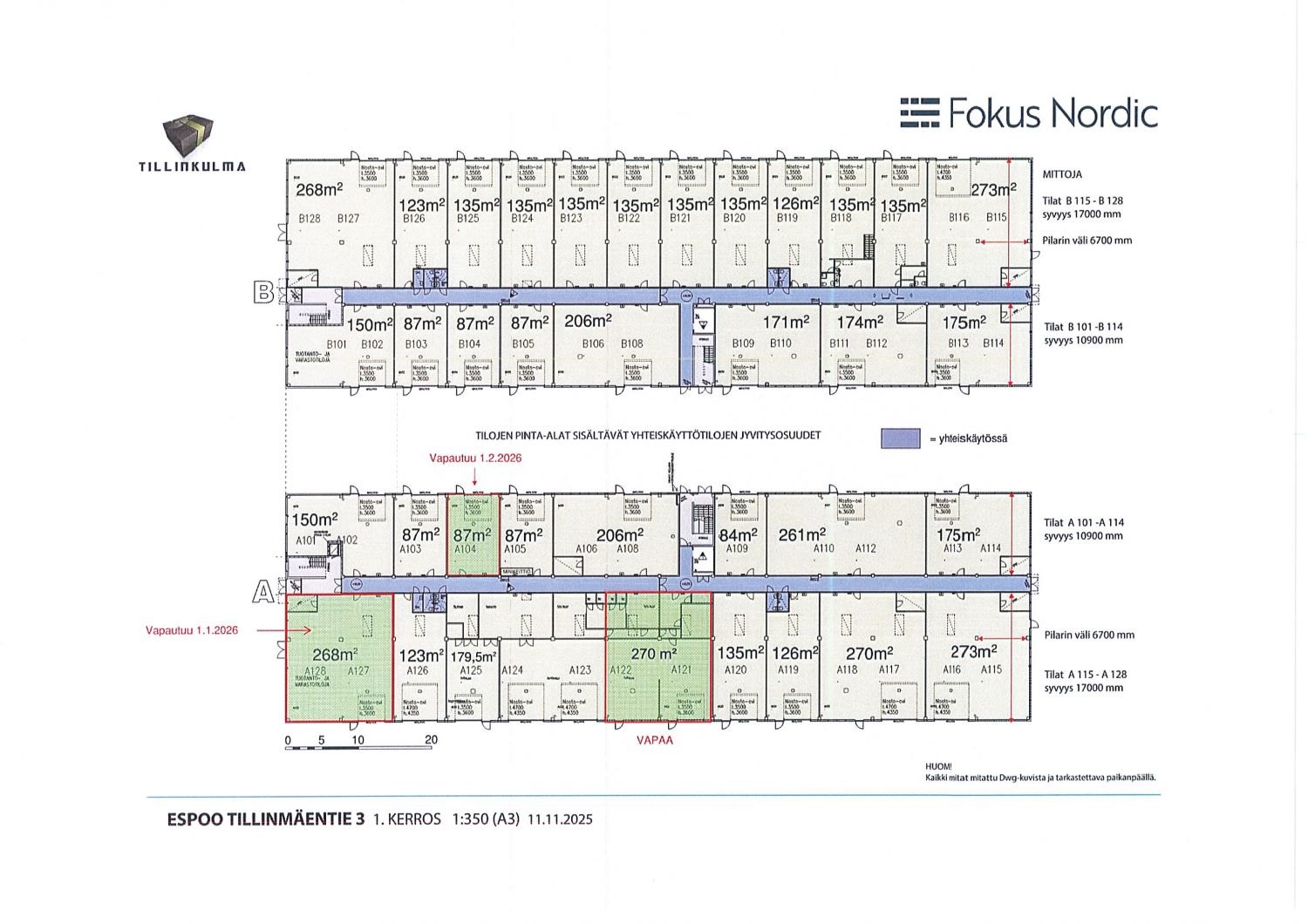 Tillinkulmassa vuokrattavissa siisti ja valoisa 268 m²:n tuotanto/varastotila (A128) kiinteistön kulmassa. Katutason nosto-ovella varustettu tila soveltuu esim. huoltoliikkeen käyttöön.