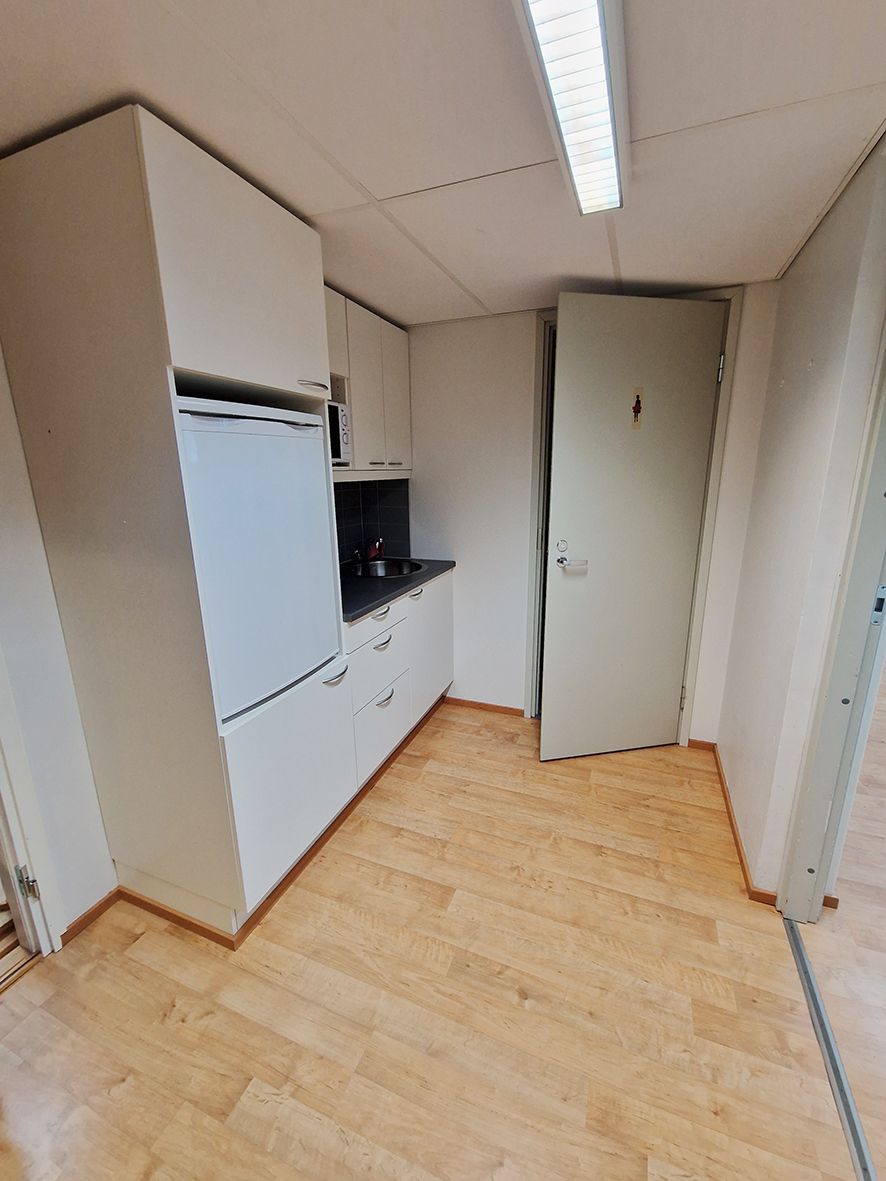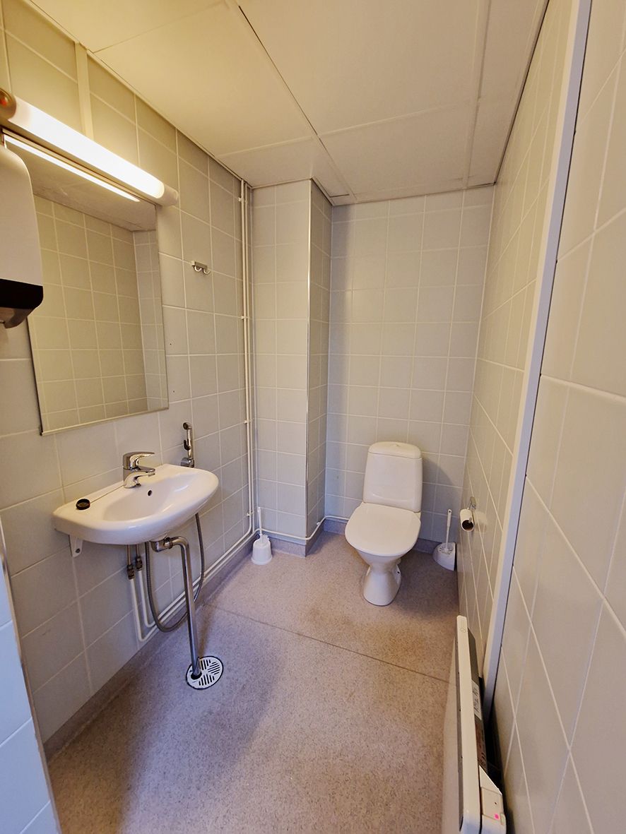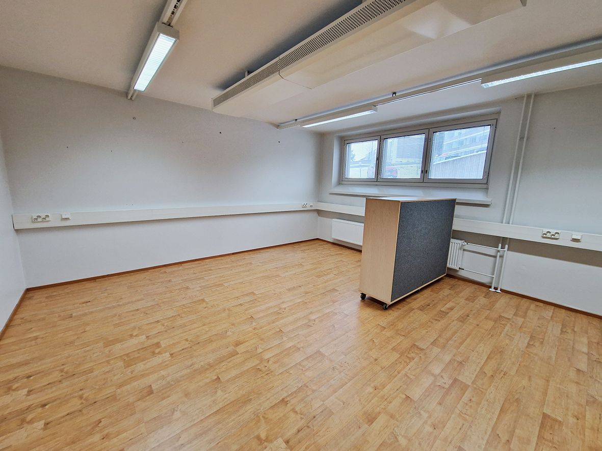 Peruskuntoinen toimistotila. Tähän tilaan on kaksi sisäänkäyntiä. Tila koostuu kahdesta erillisestä isommasta tilasta, joiden välissä on pieni keittiö ja wc. Isomman avotilan yhteydessä lisäksi toinen wc. Myös pieni varasto. Toimistotila sijaitsee pari porrasta maantason alapuolella ja ikkunat ovat huoneiden yläosassa.