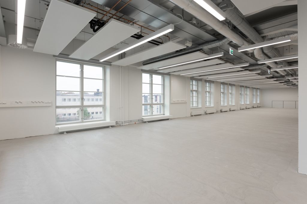 Tämä 407,5 m² kokoinen tila sijaitsee kiinteistön 4. kerroksessa. Avara tilakorkeus, industrial-henkiset ikkunat ja näkyviin jätetty talotekniikka luovat uniikin tunnelman toimistoon.