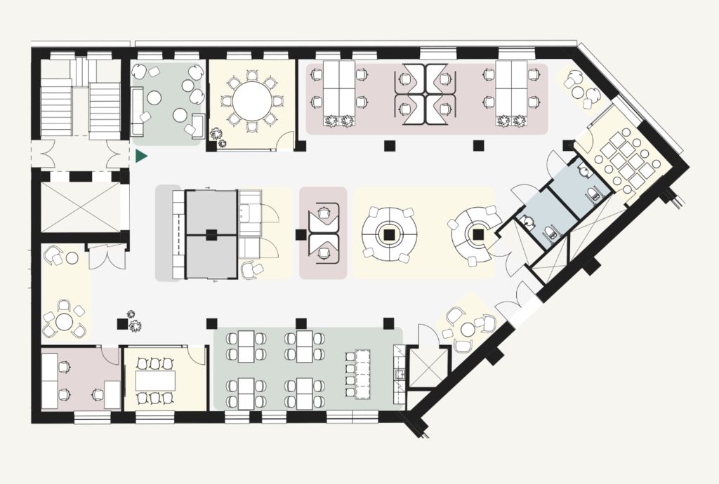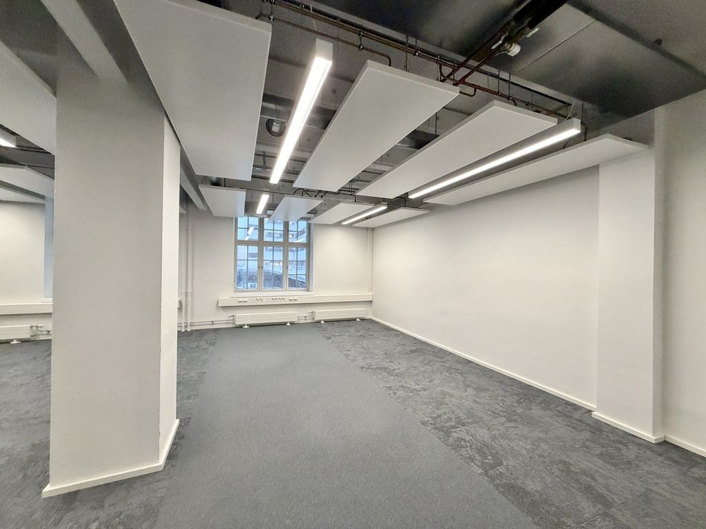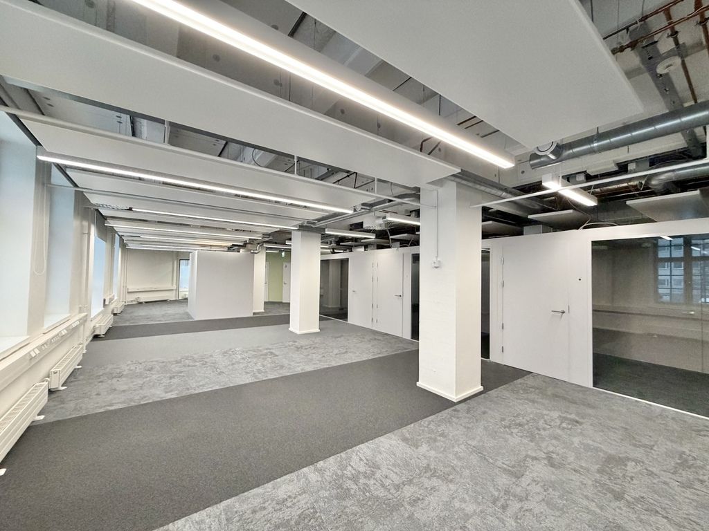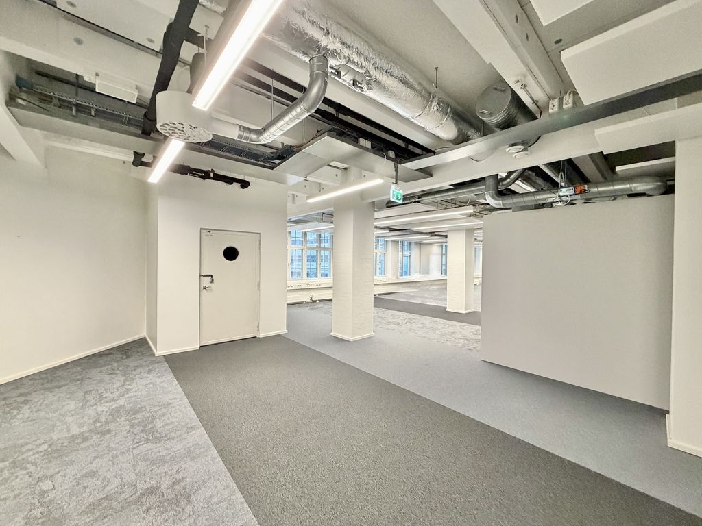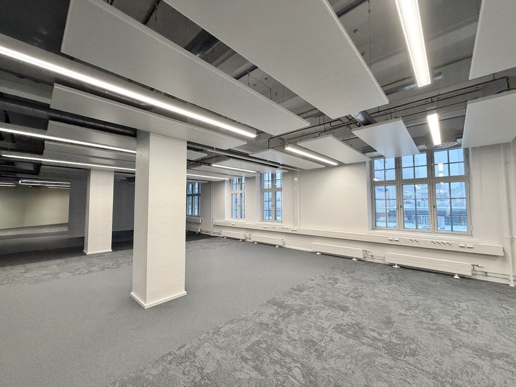 Tämä 417 m² kokoinen tila sijaitsee kiinteistön 2. kerroksessa. Avara tilakorkeus, industrial-henkiset ikkunat ja näkyviin jätetty talotekniikka luovat uniikin tunnelman toimistoon.