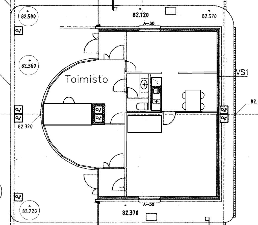 Sopii esim. kahdelle yrittäjälle. Omat sisäänkäynnit, yhteinen "aula", keittiö ja wc.