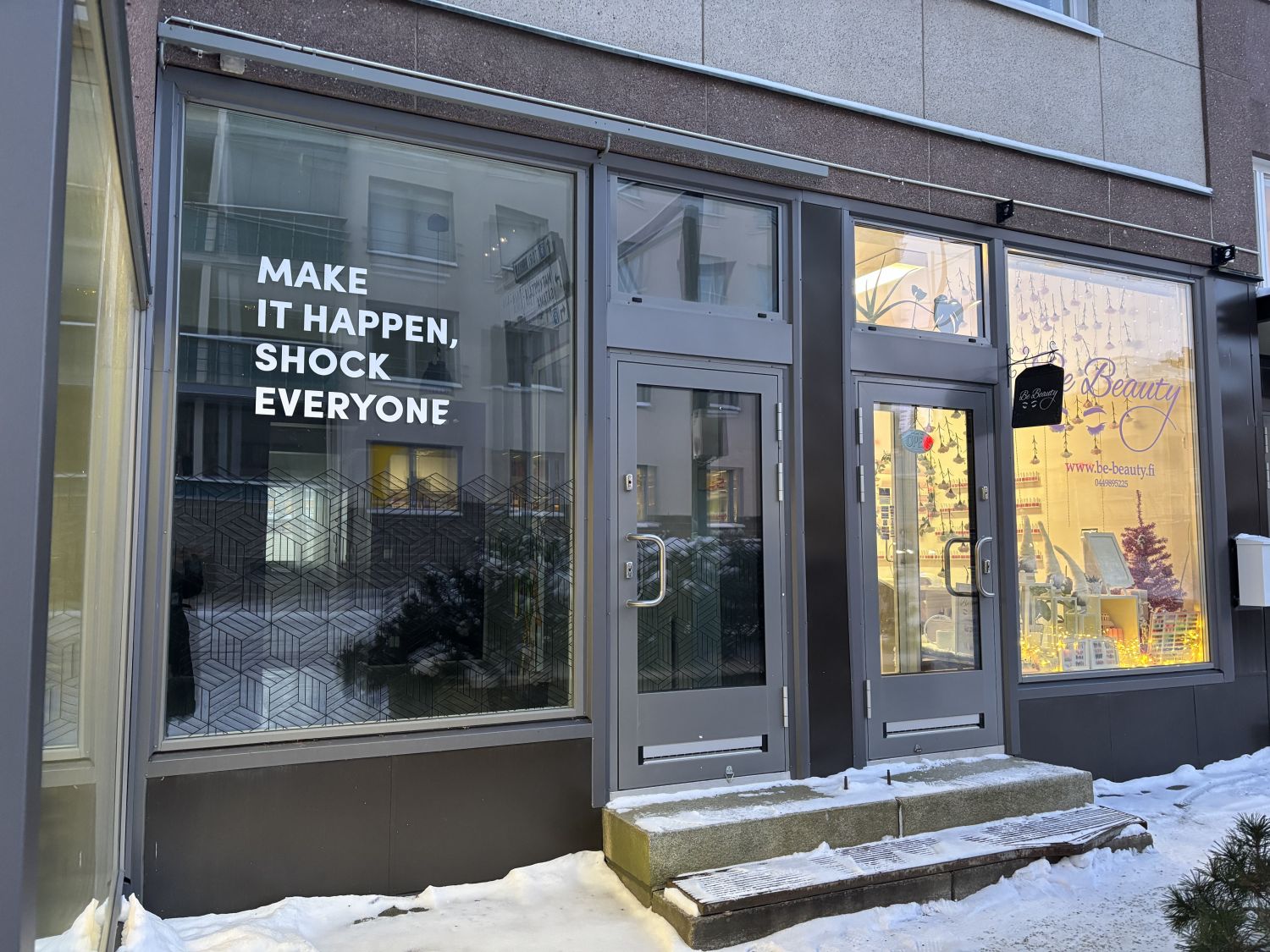 Näkyvä sijainti vilkkaalla kadulla – kompakti ja siisti toimitila.