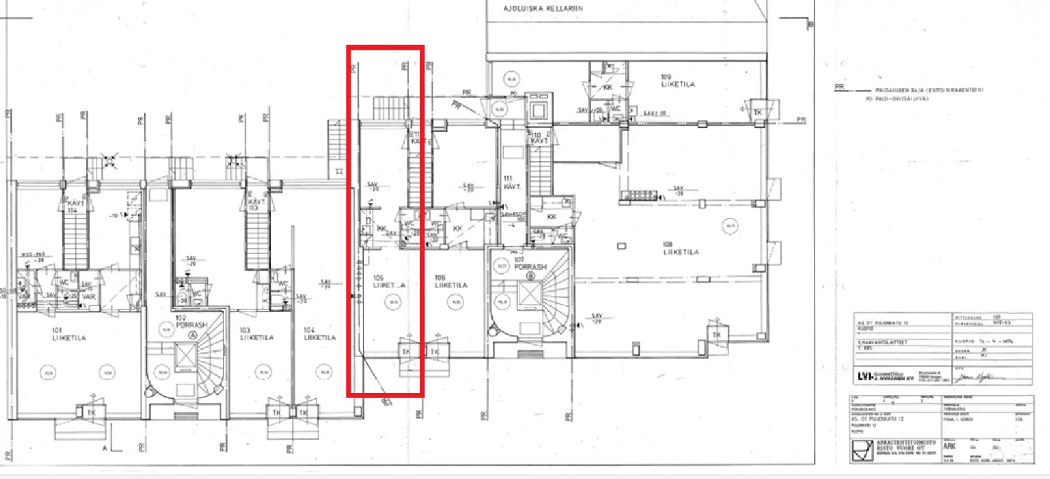 Vuokraan sisältyy varasto 12,5 m2 kellarikerroksessa.