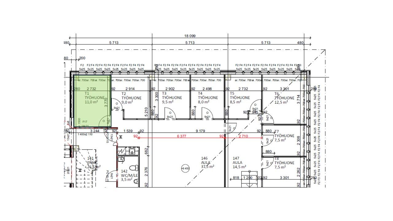 Vapautumassa siisti 11m2 toimistohuone 1. kerroksessa.