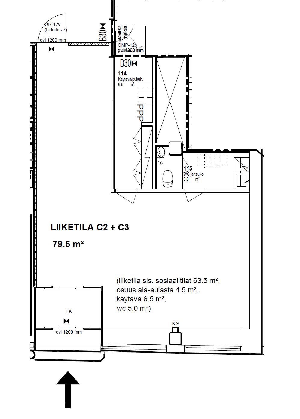 - Liiketila C3, 20m2, vuokrattavissa tilan B tai C2 mukana. Tilasta voidaan tehdä esimerkiksi taukotila, jossa myös pieni varasto.