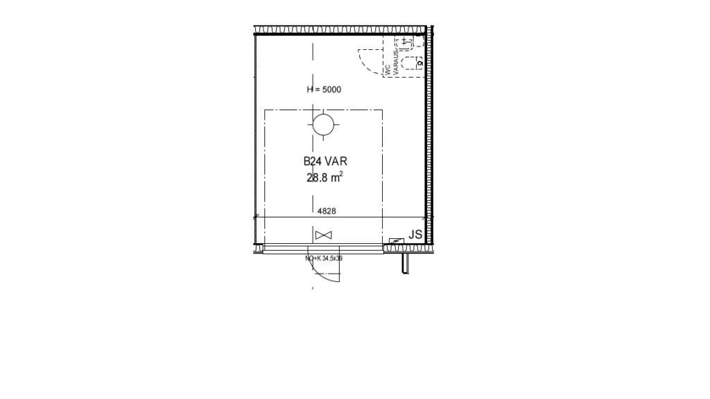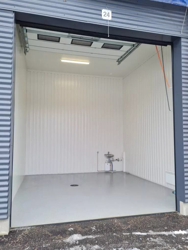 Tilan mitat ovat pituus 5,95 m × leveys 4,80 m × korkeus 5,00 m. Tilan lattiapinta- ala on 29 m². Tilaan on sähkökäyttöinen nosto-ovi (L 3,00 m × K 3,90 m) erillisellä käyntiovella.