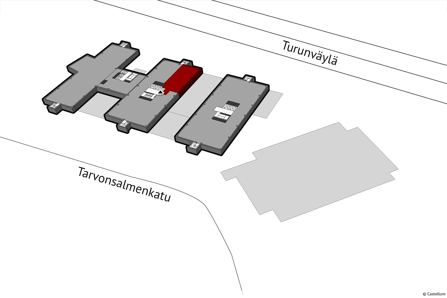 Vuokrattavana muuntojoustava neljännen kerroksen toimistotila, jossa erikokoisia 10-40 m² työtiloja, oma keittiö sekä oleskelutila. Tilaan mahdollista rakentaa esimerkiksi lisää työhuoneita tarpeen mukaan. Kohteeseen on hyvät kulkuyhteydet, joten liikkuminen paikan päälle on vaivatonta.