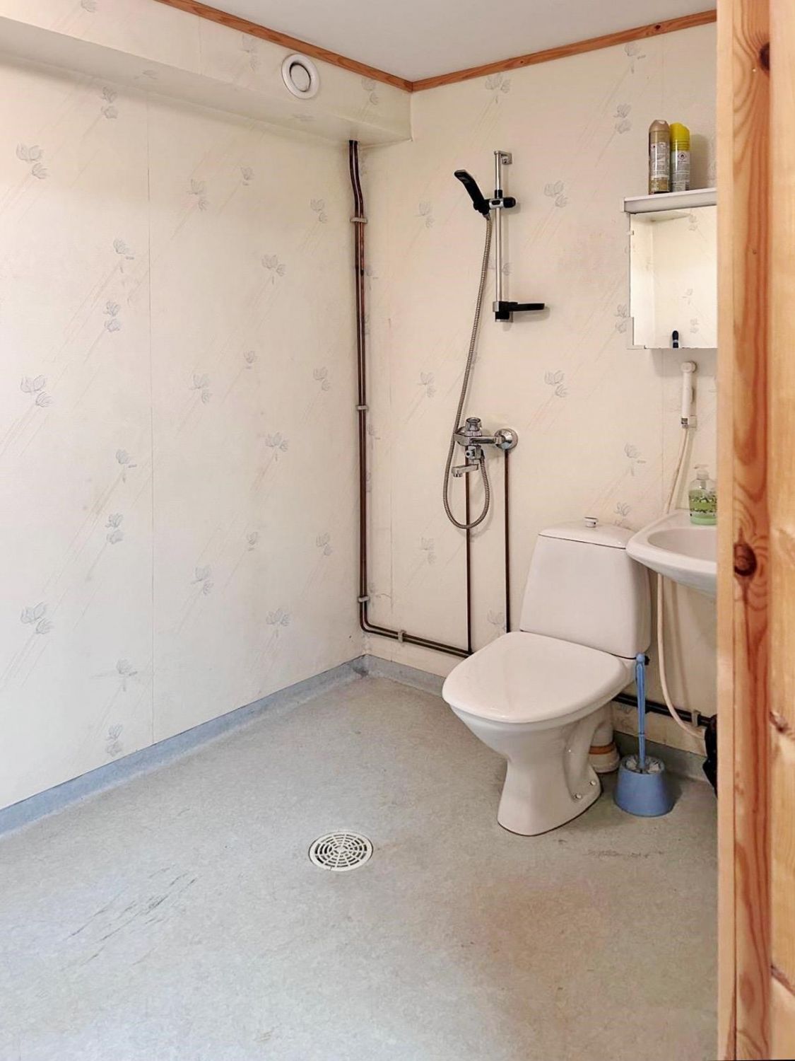 Vuokralaisen käytössä yhteiset tilat, joissa keittiö, puhuone, suihkutila, sauna ja wc.