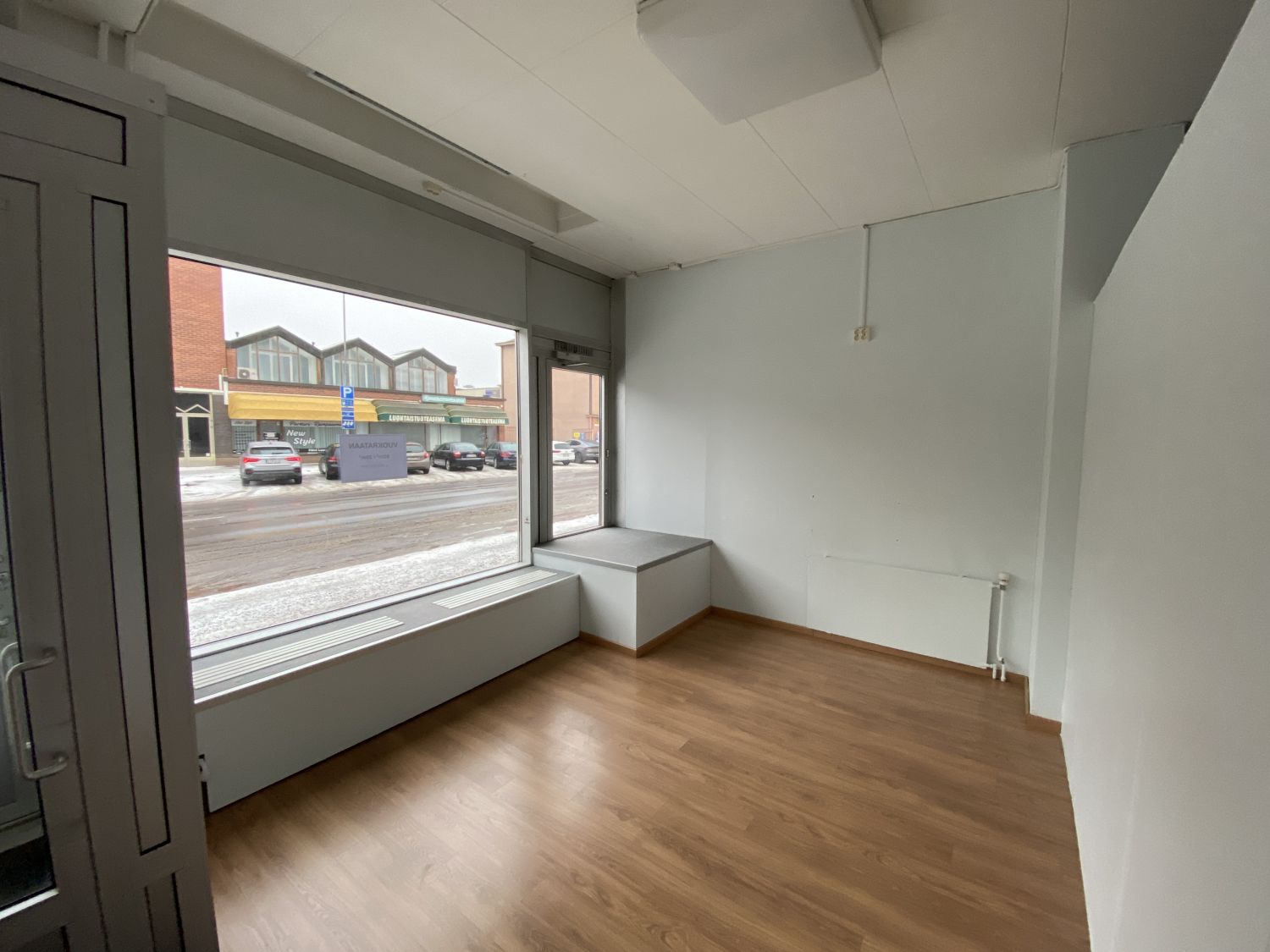 Tilassa on yksi huone, keittiö ja avotilaa sekä asiakas-wc. Kellarissa varastotila/pukuhuone ja wc. Näkyvällä paikalla kauppatorin vieressä. Kulmahuoneisto ja ikkunat kahteen suuntaan. Ota yhteyttä ja sovi näyttö!