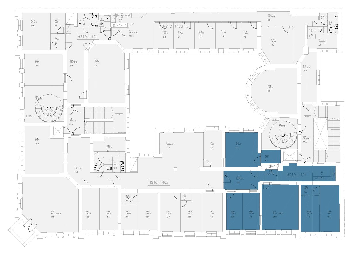 Vuokrattavana 4. kerroksen siistiä toimistotilaa kauniista arvokiinteistöstä. Tilassa on useita työhuoneita, neuvotteluhuoneita, oma keittiö. Tilaan sisäänkäynti Eerikinkadun puolelta.