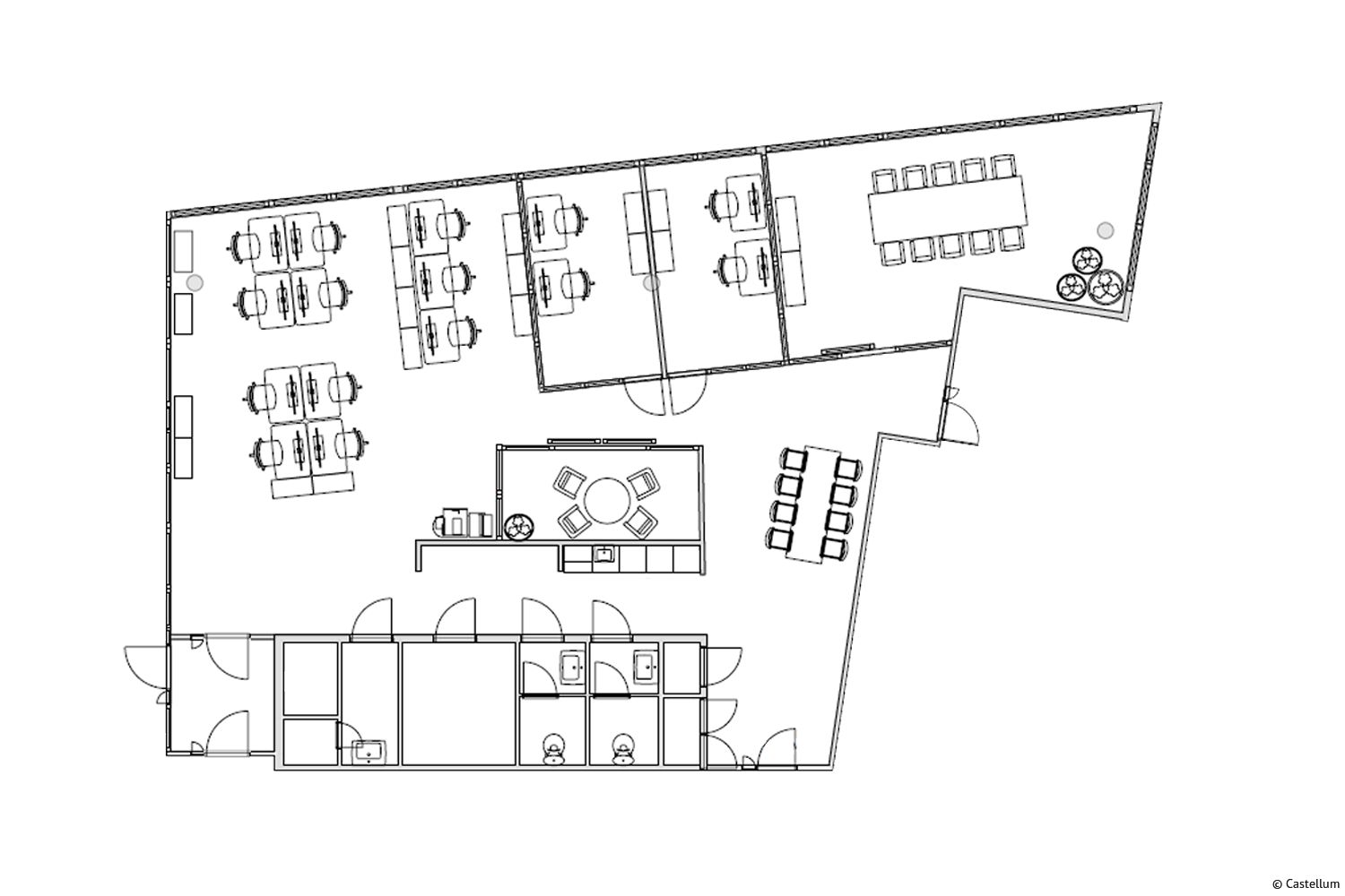 Vuokrataan valoisa avotoimistotila, jossa on 2-3 huonetta, working cafe-alue, integroitu keittiö, wc:t ja varasto/siivouskomero. Ikkunat avautuvat 3 suuntaan. TIla on muuntojoustava, ja huoneita voidaan rakentaa lisää.
