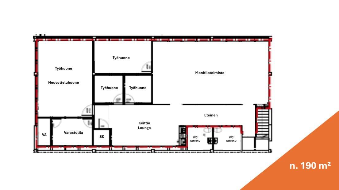 Vuokrataan toimistotilaa Kuopion keskustan alueelta Linjurista. Vuokrattavia tiloja yhteensä n. 190 neliötä. Tilat muodostuvat monitilatoimistosta, työhuoneista ja neuvotteluhuoneesta.