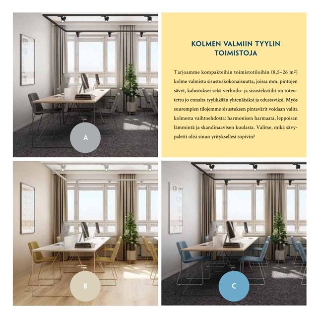 Akseli & Elina tarjoaa työhyvinvointia ja yhteisöllisyyttä tukevia, persoonallisia toimitiloja, jotka on suunniteltu ja toteutettu sopimaan hyvin yhteen nykypäivän työelämän vaatimusten kanssa. Valoisat ja laadukkaat, mutta rennon rosoiset toimitilat luovat innostavan ja tuloksellisen tahdin työnteolle, itsensä kehittämiselle ja uuden luomiselle joka päivä.