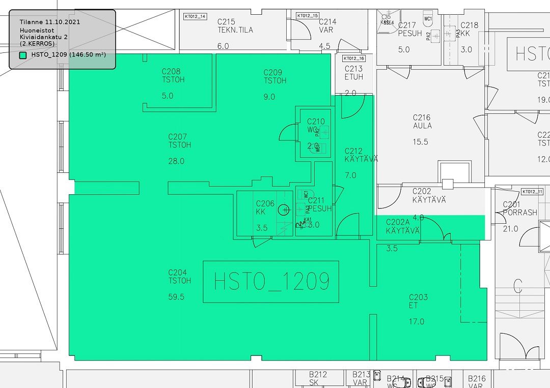 2 isosta huoneesta koostuva toimisto/varastotila, tila betonilla.