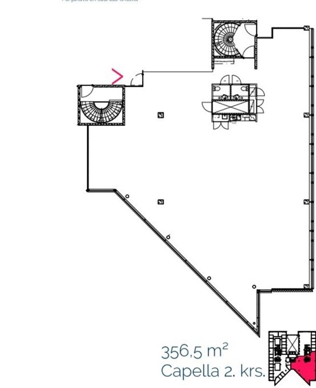 Avara ja valoisa 2. kerroksen toimisto 356,5 m² + jyvitetty osuus krs-aulasta 6,5 m²