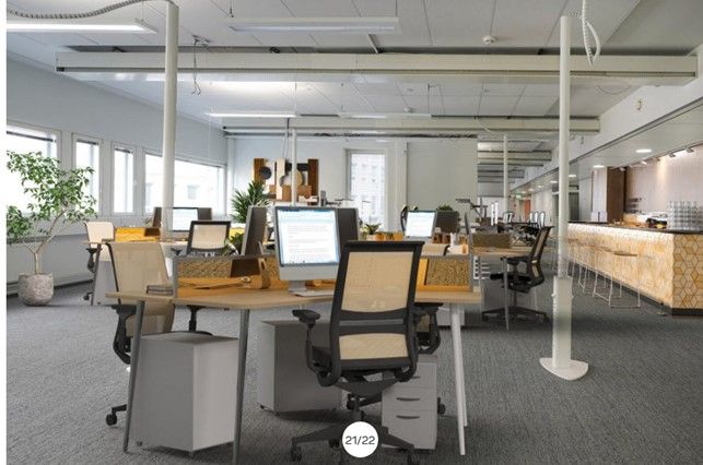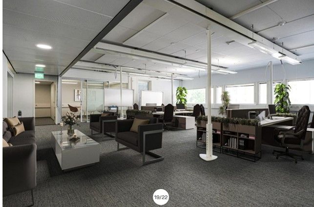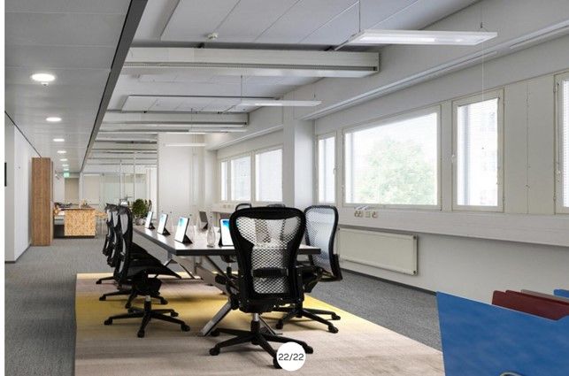 2. kerroksen avara ja helposti muokattavissa oleva toimistohuoneisto.