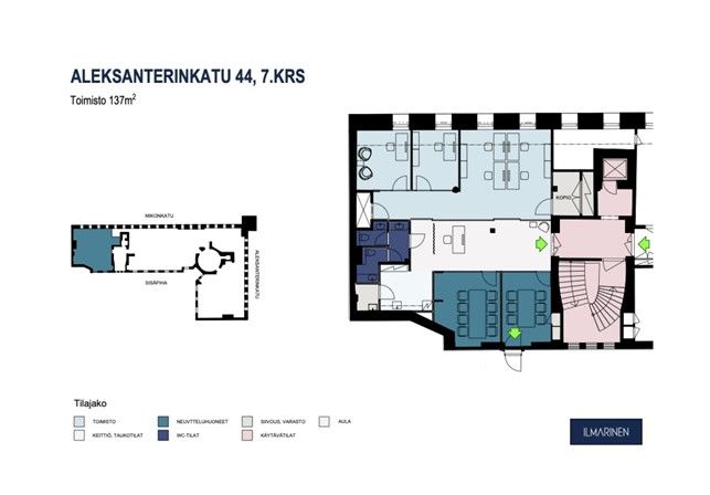 Väinämöisenlinnan ylimmän seitsemännen kerroksen kaunis täysin remontoitu muuttovalmis toimistotila.
