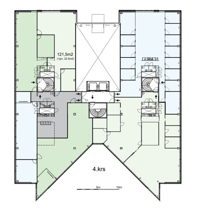 Valoisa tila koostuu 121,5m2 omasta toimistosta, wc:stä, neuvotteluhuoneesta sekä yhteisestä alueesta 23m2. Pientoimistoalueella on yhteiskäyttöinen keittiö, astiat sekä kahvin- ja vedenkeitin. Sähköt sekä yhteisten alueiden siivous kuuluu vuokraan.