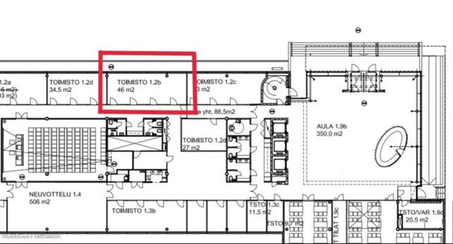 1. kerroksen toimivapohjainen toimistohuoneisto.