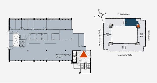 Kiinteistössä on aulapalvelu, vuokrattavia neuvottelutiloja, lounasravintola, elokuussa 2023 valmistunut uusi pyöräparkki, autohalli, syksyllä 2023 remontoitu kuntosali sosiaalitiloineen, jotka on myös uudistettu vuoden 2023 aikana. Kellarikerroksesta vuokrattavissa pienvarastotilaa. Kulku tilojen välillä sujuu näppärästi sisäpihan tai autohallin kautta.