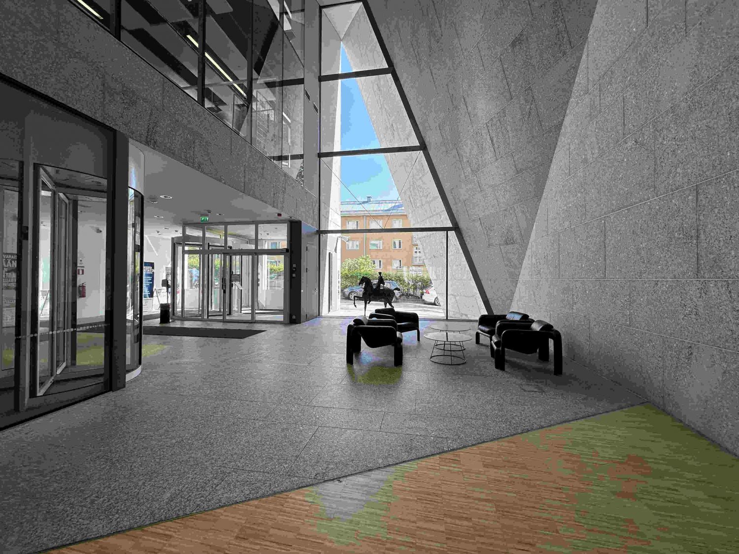 Tämä OP:n pääkonttorina tunnettu toimistokortteli on moderni, vuosina 2015-2017 valmistunut JKMM Arkkitehtien suunnittelemana ja mm. LEED Gold -sertifikaatilla palkittu toimistorakennus. Arkkitehtonisesti upeat tilat ovat avaria ja valoisia, ja materiaalit parhaita mahdollisia. Palvelut rakennuksessa ovat erinomaiset, joista esimerkkeinä lounasravintoloita löytyy useita, aulapalvelu ja neuvotteluhuoneet ovat tasokkaita sekä myös kuntosali-, hieronta- ja kampaamopalvelut ovat työntekijöiden käytettävissä.