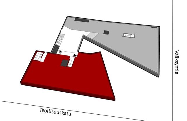 Vuokrattavana toisen kerroksen korkeatasoinen toimistotila Vallilassa, osoitteissa Vääksyntie 2. Korttelin kulmassa sijaitsevassa toimitilassa on suuret ikkunat Teollisuuskadun ja Vääksyntien suuntiin. Avotoimistoa, työhuoneita, neuvottelutilat ja wc