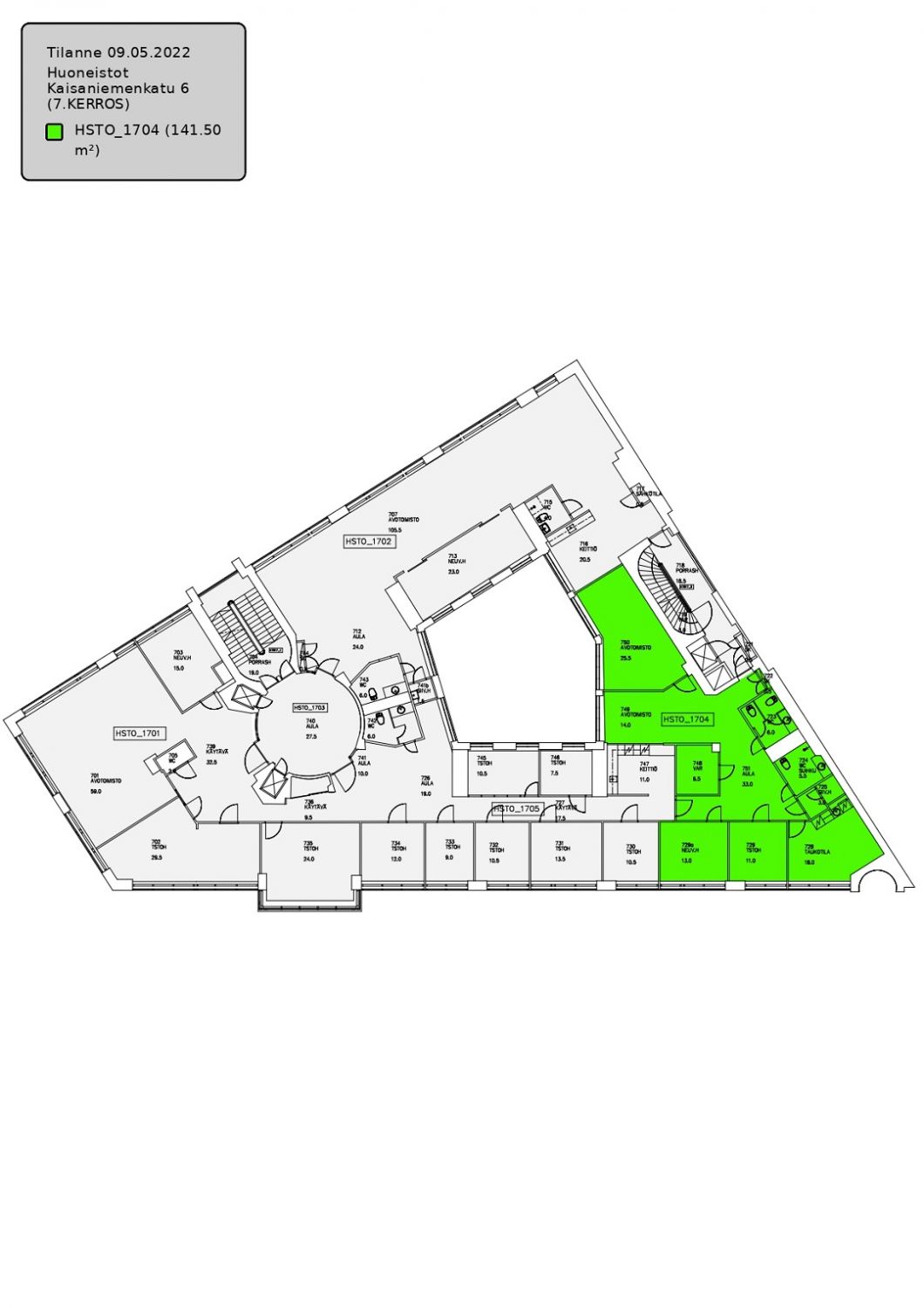 Vuokrattavissa keskeisellä sijainnilla 141,5 m2 avotoimistotila 7. kerroksessa Kaisaniemessä.
