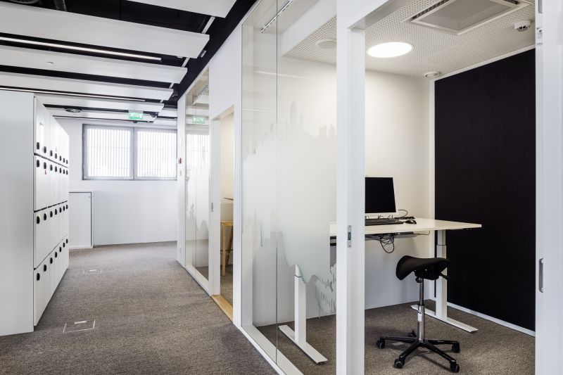neuvotteluhuoneista, kolmesta auditoriosta, Fressin ylläpitämästä kuntosalista, kampaajasta, hierojasta ja fysioterapeutista. Ratkaisut ilmanlaadun parantamiseksi ja luonnonvalon määrän lisäämiseksi edistävät terveyttä ja hyvinvointia tiloissa.