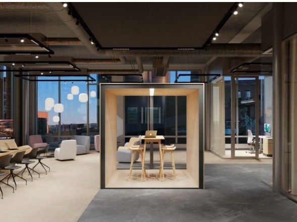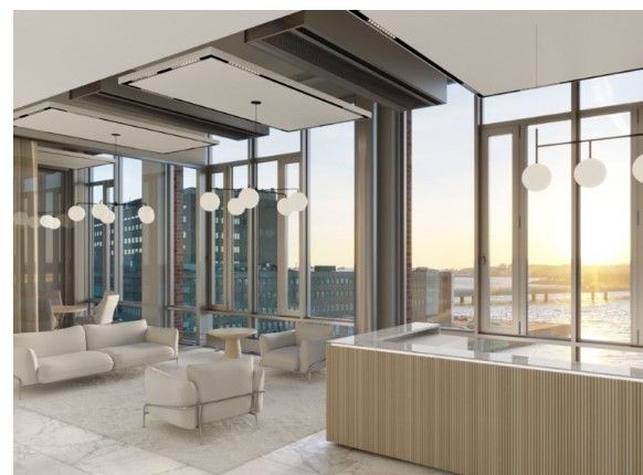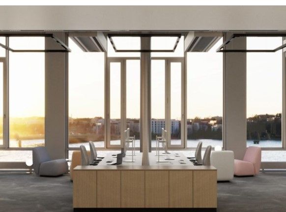 Monitilatoimisto merinäköalalla. Valoisassa tilassa on suuret ikkunat kolmeen suuntaan. Tilaratkaisu on muutettavissa toiveiden mukaiseksi.