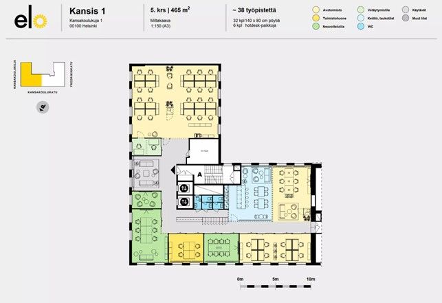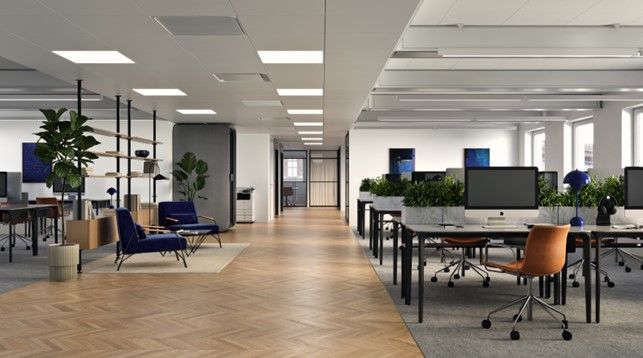 Ylimmän toimistokerroksen monien mahdollisuuksien tila keskeisellä sijainnilla. Tila muokataan käyttäjän tarpeita vastaavaksi nykyaikaiseksi toimistoksi, jolloin tilaan saadaan luotua myös yhteisöllinen loungekeittiö.