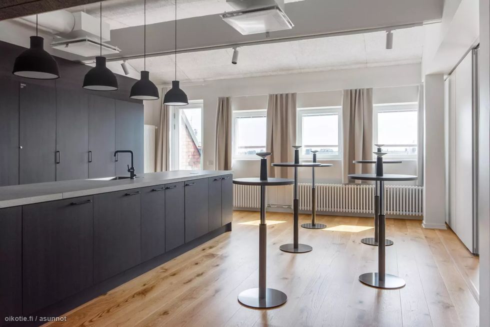 Jaettavat yhteistilat ovat pinta-alaltaan noin 59 m2 ja kattavat yhteisen taukokeittiön, wc:t sekä aula-loungen. Vuokranmaksu pinta-alan 149,5 m2 perusteella.