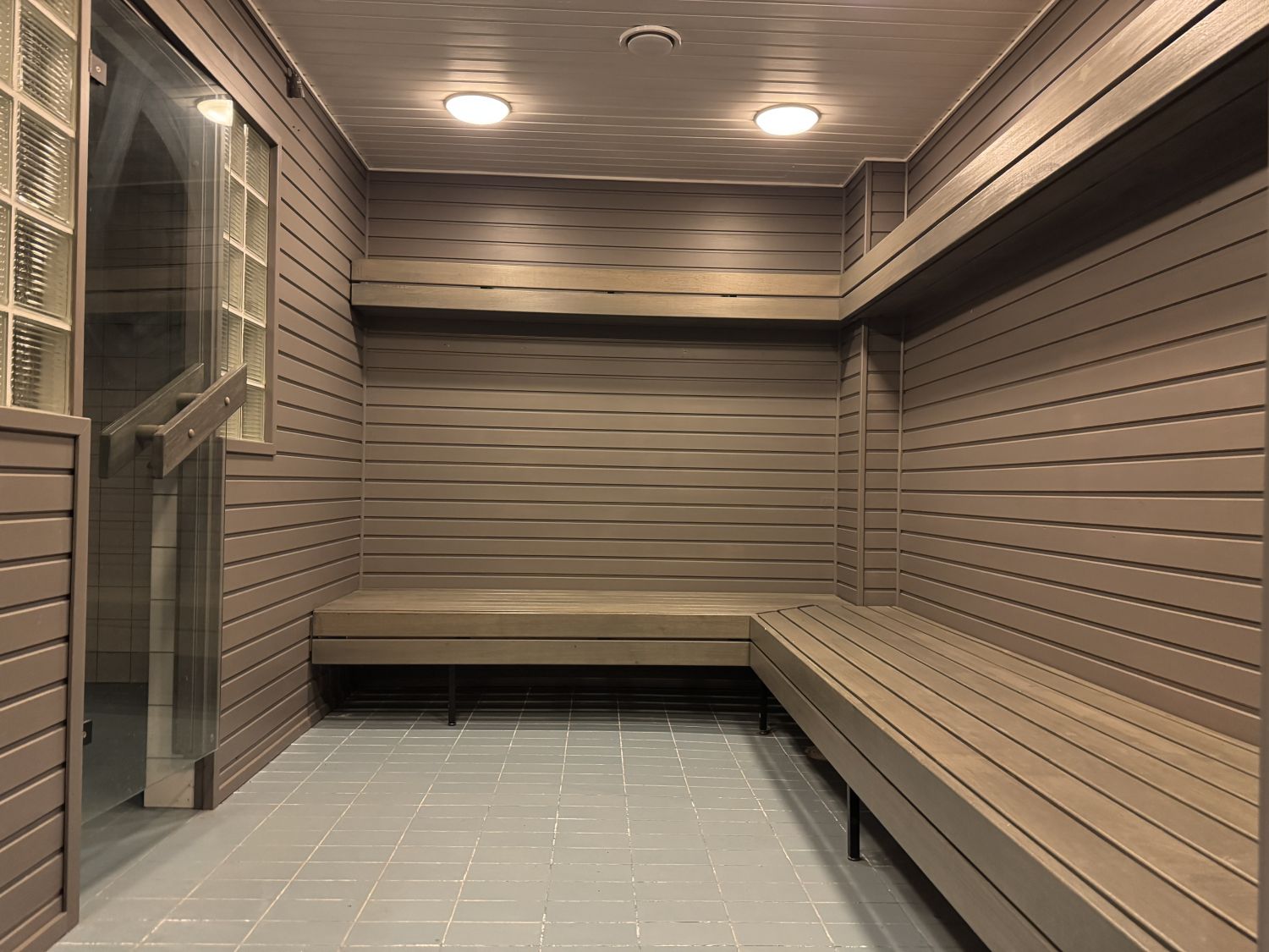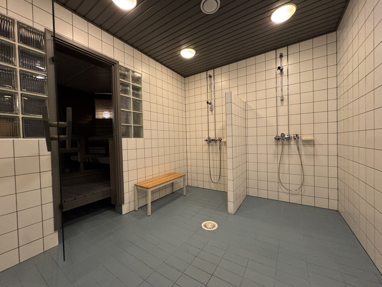 Tilaan johtaa katollinen luiska ja leveä lasinen pariovi.