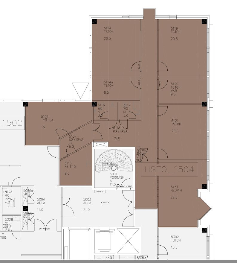 Vuokrattavana 5. kerroksen siistiä toimistotilaa.