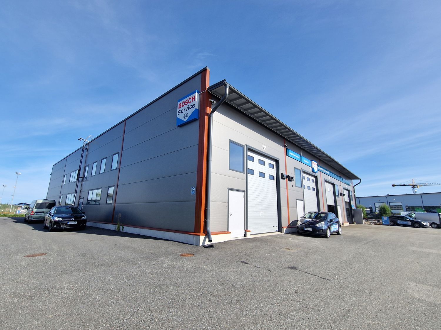 Hallin vapaa korkeus noin 6,4 m. Nosto-ovi (3,6 m x 4,5 m), hiekanerotuskaivo, voimavirtapistorasia.