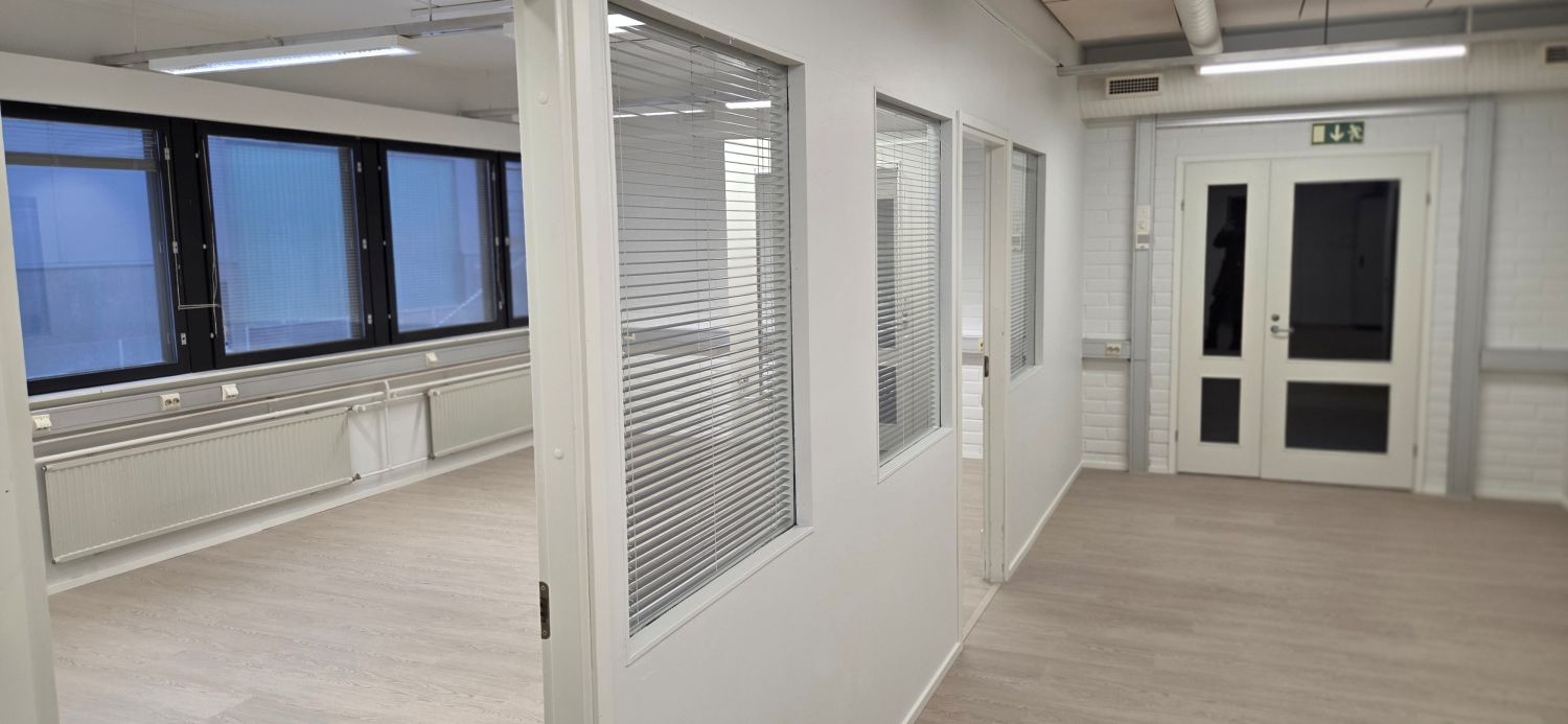 Siistiä showroom- tai toimistotilaa, huoneita ja avotilaa. Vinyylilattia ja maalaus 2026 (n.200 m2).